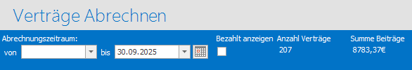 Verträge aufgelistet, die bis zum gesetzten Abrechnungszeitraum abgerechnet