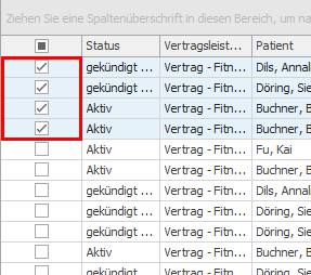 Markieren Sie die Verträge, die Sie abrechnen möchten,