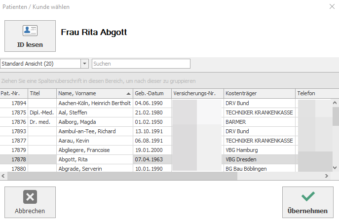 Es öffnet sich ein neues Fenster, über welches Sie nun den jeweiligen Patienten suchen und übernehmen können.
